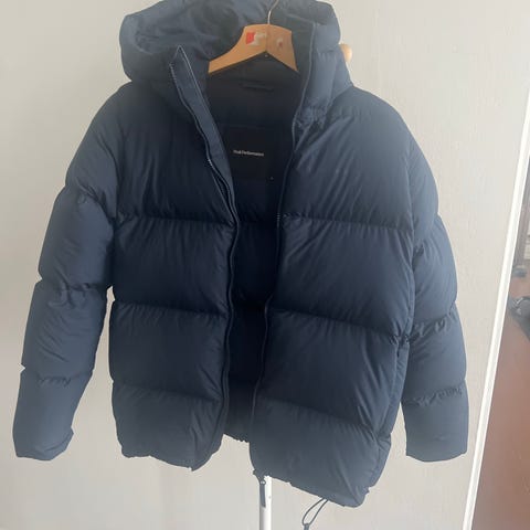 Peakin pehmeän sininen, muhkea ja erittäin lämmin untuvatakki. Todella hyvässä kunnossa! Ei pesty, ei likaa/ tahroja. Hupun karvareunan saa halutessaan irti.