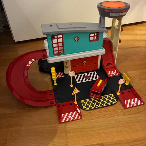 Palomies Sami paloasema. Paljon leikitty, muuten ok kunto, mutta ovissa halkeamia.
