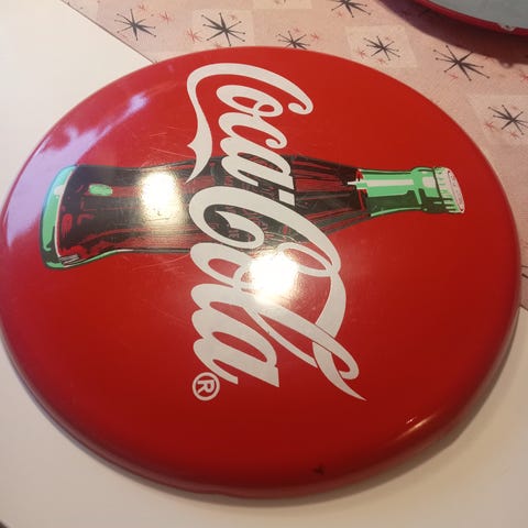 Vanha Suomi Coca Cola peltikyltti peltinen mainos 58cm juoma-automaatti vintage