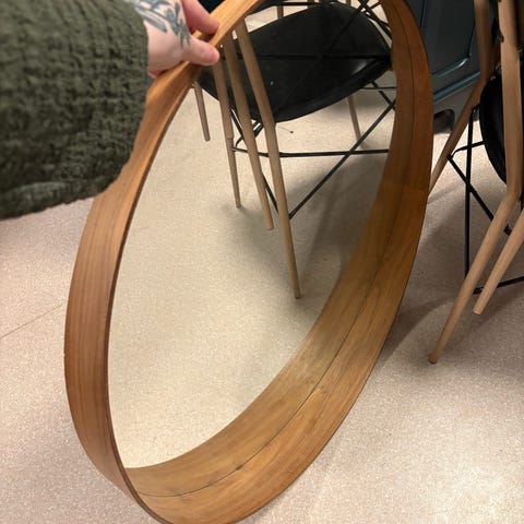 IKEA STOCKHOLM pyöreä seinäpeili, jossa on puinen kehys. Tätä vaaleaa väriä ei enää saatavilla.