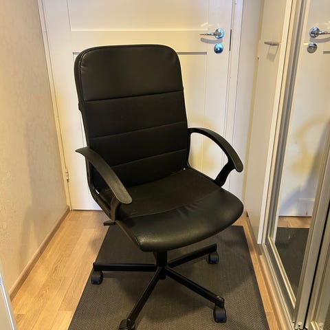 Myydään Jysk merkkinen työtuoli hinta 25 euroa. Hyväkuntoinen. Korkeussäätö. Tekonahka valkoinen.