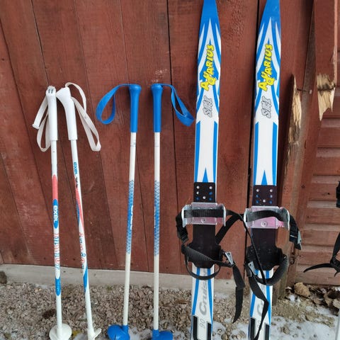 Uutena ostetut lasten sukset 70cm ja sauvat 65cm