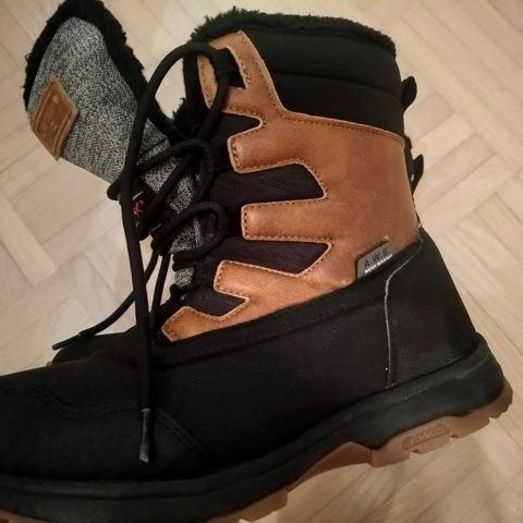 Tämän parempia kenkiä ei ole. Toimivat pakkasessa ja loskassa. Lumilukot varsissa. Oikean kengän takana oleva pieni kolmioheijastin hiukan irti toisesta reunasta (säilytin liian kauan liian huolimattomasti), muutoin oikein hyvässä kunnossa, kuten kuvista näkyy. Mieluiten nouto.