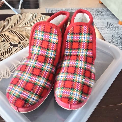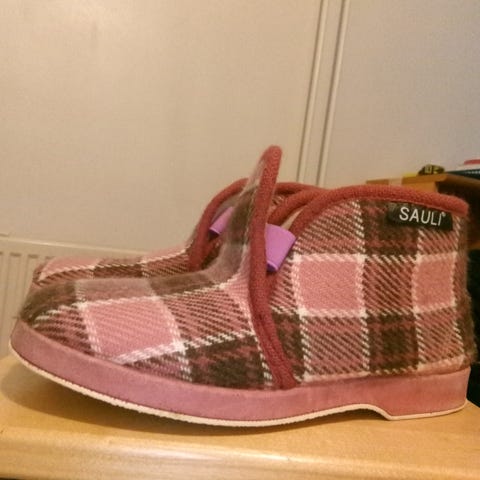 & Other Stories Tohvelit koko 37. Sisältää vaaleanpunaisen ja ruskean ruutukuvion. Valmistettu pehmeästä materiaalista, sopii sisäkäyttöön.