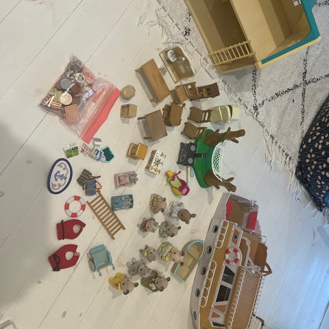 Pupuperhe, kylpyhuoneen ja keittiön kalusteita, vaunuja sekä paljon astioita ja ruokia. Vain nouto. Koiratalous.