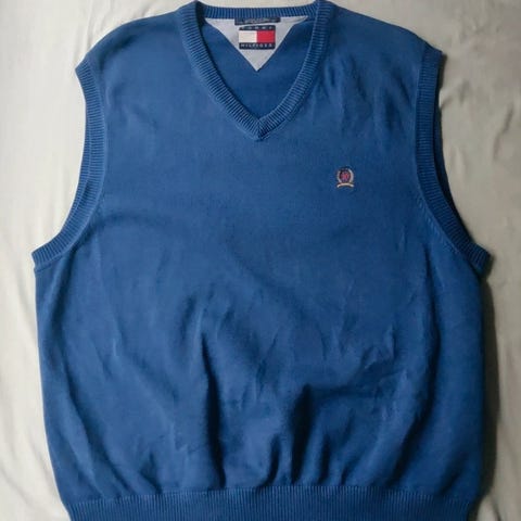 Tommy Hilfiger miesten neuleliivi, koko L. Valmistettu 100% puuvillasta. Sopii kerrospukeutumiseen ja erilaisiin tilaisuuksiin. Pituus 74 cm. Pari pienempää tahraa, jotka todennäköisesti saa putsattua. Ks kuva.