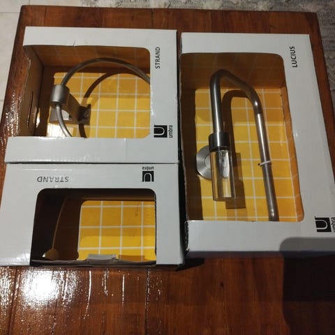4 kpl pyyhekoukkuja, wc-paperiteline, Tuotteiden väri kiiltävä messinki, materiaali messinki. Hinta koko setille 150 euroa postitettuna.