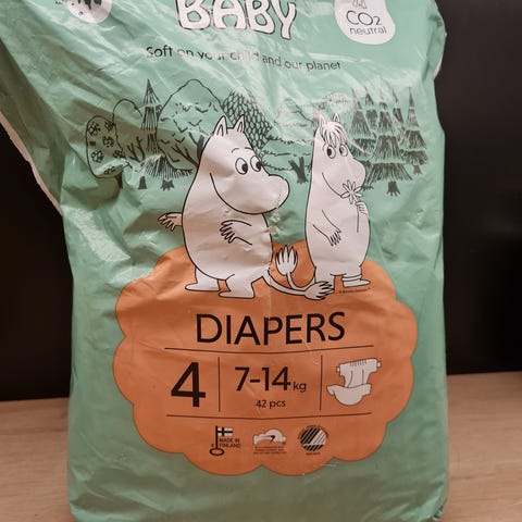 Annetaan Muumi-teippivaippoja. Koko 6 (12-24 kg). Saatiin nämä naapurilta, eivät tule meillä käyttöön ja siksi annetaan mielellään eteenpäin tarvitsevalle! Paketti aiemmin avattu, siinä vähän alle 34 kpl vaippoja. Nouto Olkahisista, tarvittaessa noutomahdollisuus Santalahdesta/Onkiniemiestä.