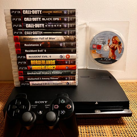 Sony Playstation 3 pelikonsoli sisältäen konsolin, ohjaimet ja liitännät. Pakettiin kuuluu myös useita pelejä, kuten NHL 12, Gran Turismo 5, Need for Speed: Most Wanted, LittleBigPlanet ja MX vs. ATV Reflex. Konsoli toimii viihde- ja pelikäytössä. Haku rantakylästä. Saa tarjota