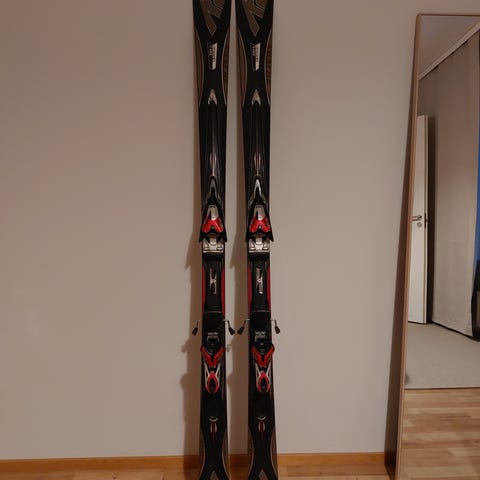 Yhdessä suksessa selvä naarmu mutta muuten hyvässä kunnossa, kaksi vuotta vanhat ja käytetty kolmessa laskettelureissussa.