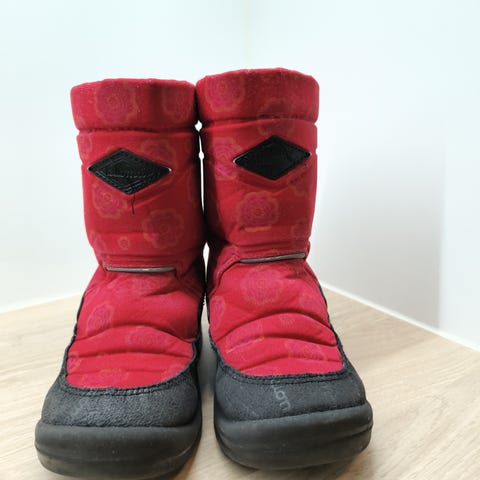 Aniliininpunaiset Kuoma talvikengät, koko 28. Hyvä kuntoiset. Takalenkkeihin on itse ommeltu kukkaompelukuvat helpottamaan lasta löytämään omat kenkänsä päiväkodin hyllystä. Ei eläimiä, ei tupakointia, ei sisäilmaongelmia.