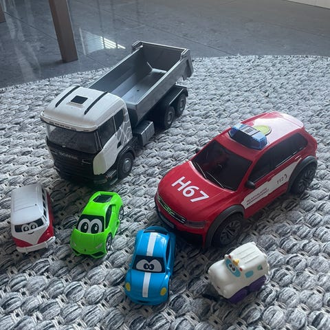 Myynnissä autoleluja pakettina. Yhteensä 10euroa