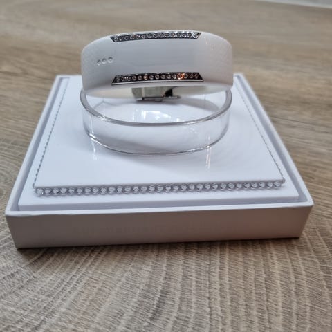 Polar Loop Crystal aktiivisuusranneke valkoisella värillä ja kristallikoristeilla. Varustettu Bluetooth-yhteydellä ja USB-latauksella. Seuraa aktiivisuutta, kalorien kulutusta, unta ja antaa älykkäitä ilmoituksia.