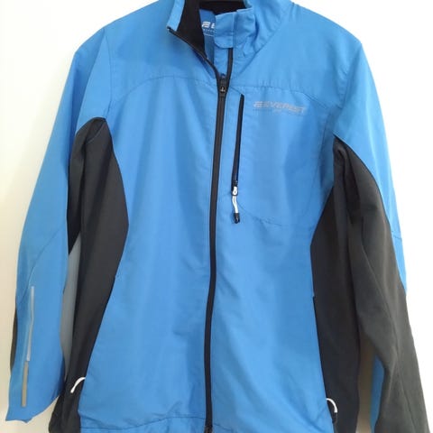 Haltin vaaleanpunainen-musta hiihtotakki tai juoksutakki.