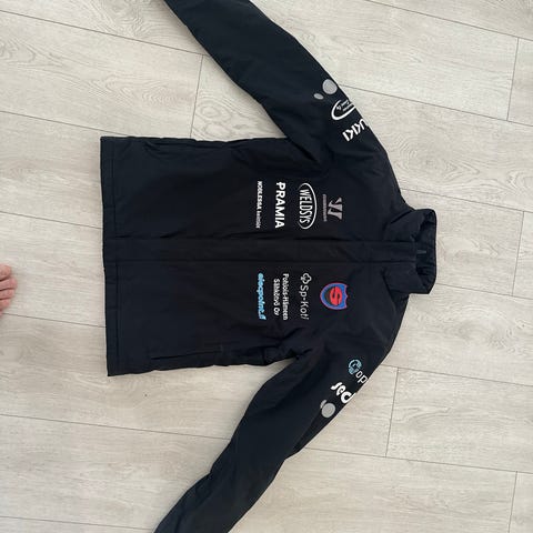 TuTon logolla varustettu Warrior kevyttoppatakki. Painettuna myös pelinumero 14. Nouto Turusta.