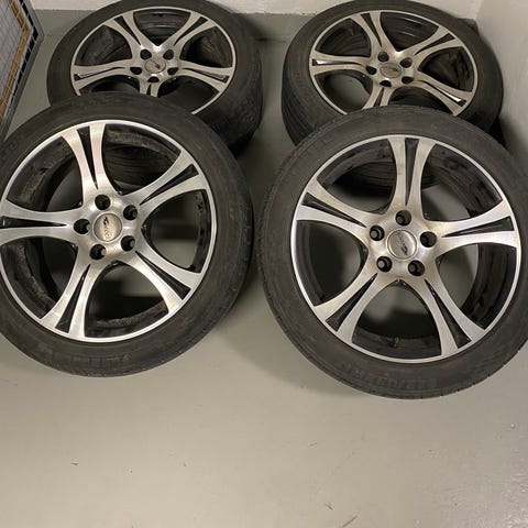 Vanteissa lakkapinta irtoilee, kanttariosumia ja lommoa. Jokunen saattaa olla vielä suora mutta suurin osa kierot.