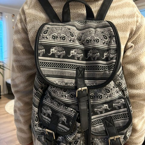 Käytetty, mutta toimiva ja ehjä. Muutama kuluma takana olevan vetoketjuaukon sivuilla sekä etupuolella etutaskun kulmissa, nämä näkyy kuvissa. Vetoketjut toimivat, olkaimet säädettävät.