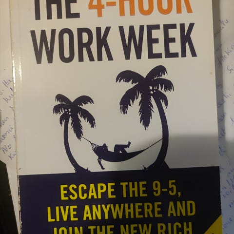 Timothy Ferrisin kirjoittama Four Hour Work Week kirja. Englanninkielinen. Hyvässä kunnossa.
