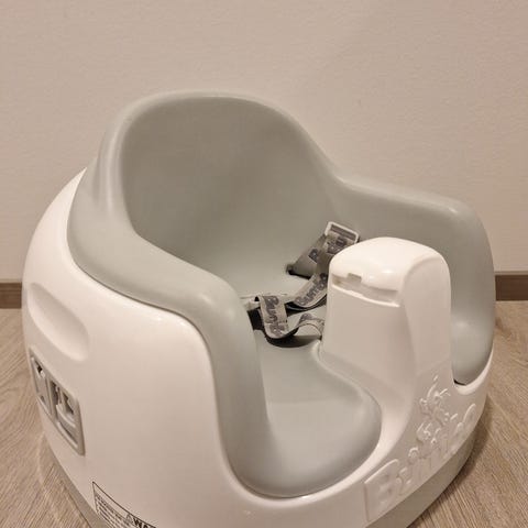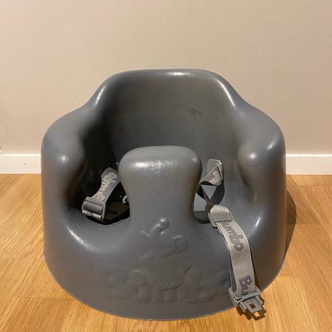 Vähän käytetty vihreä Bumbo lastenistuin ja tarjotin.
