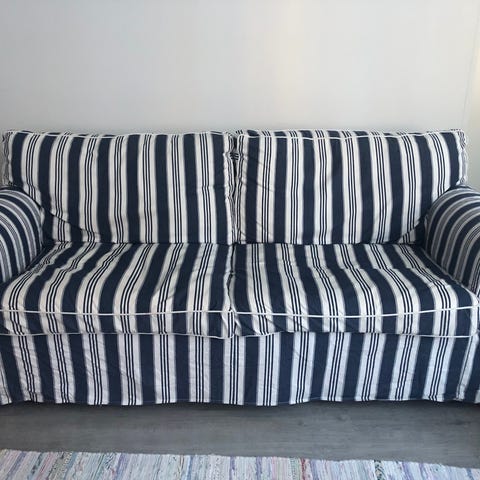 Sohva oikein hyvässä kunnossa, verhoilun alla alareunan vaahtomuovi osunut hieman koiranpennun hampaisiin mutta tämä ei näy normaalissa käytössä. Vuoteen patjassa käytön jälkiä mutta vaihdettavissa uuteen 160x200cm vaahtomuovipatjaan. Tarkemmat mitat ja tiedot löytyy Ikean sivuilta.
