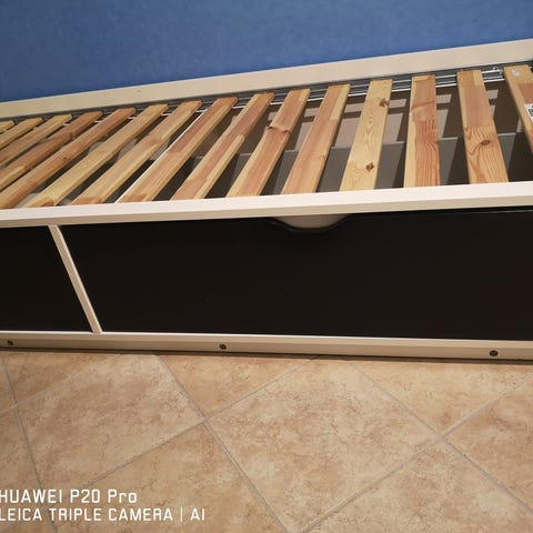 Ikean sänky, johon käy 90x200cm patja. Tarvittaessa löytyy patja mukaan +15€. Sängyn alus 40cm.