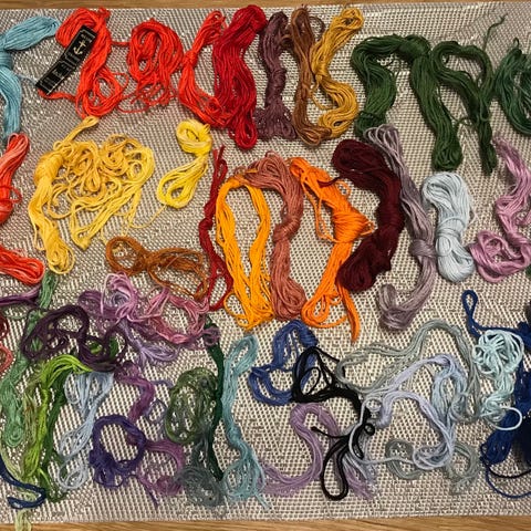 Myytävänä kuvassa olevat 6-säikeiset muliinilangat.