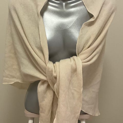 Laadukas Repeat cashmere-huivi kauniin beigen sävyssä. Koko noin 70 x 240 cm, voi käyttää muhkeana kaulaliinana tai kiedottavana shaalina.