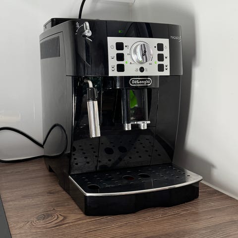 DeLonghi Dinamica kahvikone musta väri. Tässä kahvikoneessa on digitaalinen ohjauspaneeli ja mukana maitovaahdotin. Sopii kotikäyttöön ja tarjoaa erilaisia kahvijuomia.
