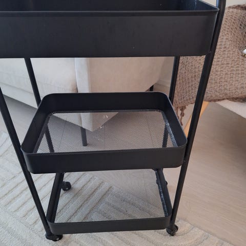 Metallinen hyllykkö pyörillä tarjoiluvaunu
