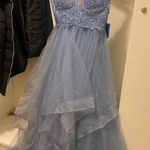 Naisten sifonki mekko, koko L, väriltään vihreä. Mekossa on koristeelliset kirjailut ja yksityiskohdat, mukaan lukien moniväriset somisteet, jotka näkyvät hihoissa ja helmassa. Mekon materiaali on kevyt ja läpikuultava sifonki, joka sopii erityistilaisuuksiin ja juhlakäyttöön.