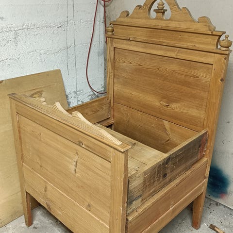 Vanha ja laadukas sängyn runko. Runko terästä ja joustinrangat pinnoitettua puuta.