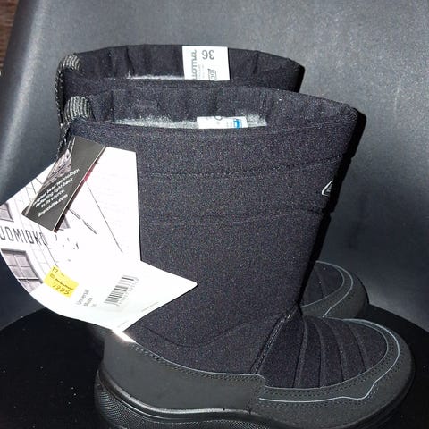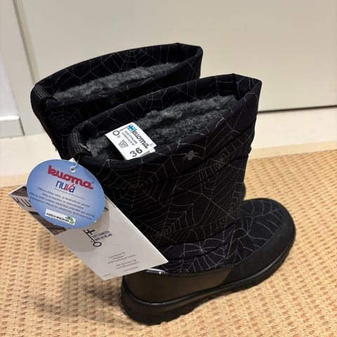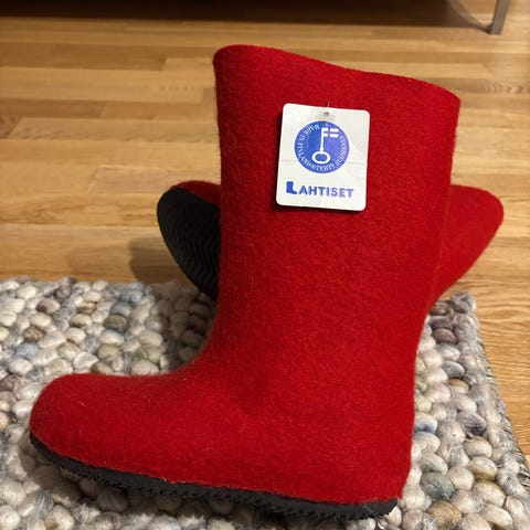Lämpimät huopikkaat (Lahtiset) koko 36, unisex. Erinomainen kenkä pakkaskelillä. Kengät ovat mustat ja valmistettu lämpimästä villasta. Pohjat ovat kumia ja tarjoavat hyvän pidon. Hinta 50€. Vain nouto.