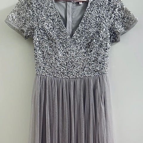 Juhlamekko, käytetty kerran. Merkki: Maya Deluxe. Pieni tahra helmassa (huomaa vain, jos katsoo tarkemmin), muuten erinomaisessa kunnossa. Koko s/36. Olen itse 175cm ja mekko oli sopivan pituinen minulle.