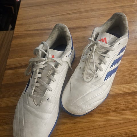 Adidas Copa TF jalkapallokengät sinisessä ja oranssissa värissä. Koko 42 2/3. Valmistettu nahkamateriaalista ja sopivat jalkapalloon. Sisäpuolen materiaali on oranssia kangasta.