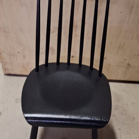 Suloinen pieni pinnatuoli, olisikohan 1960- tai 1970-luvulta? 🙂 Alkuperäiskuntoinen. Tuolissa näkyy ajan ja käytön patina, mutta sanoisin sen olevan silti hyväkuntoinen ja tukevakin. Suurin "moite" lienee yhden tukipuun/tukipinnan lohkeama, se näkyy kuvissa. Näppärä voi toki korjata ja tuunata tuolia edelleen, mutta näinkin tämä menee, jos ei täydellisyys tai uudenveroisuus ole kriteereinä. 🙂 Jaloista yksi on päästään hiukan kärsineempi muita, siitäkin kuva.