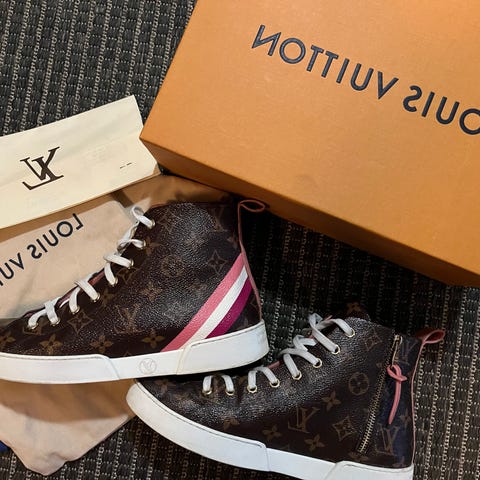 Myydään Louis Vuittonin Frontrow tennarit monogram kuosissa. Pohjallisen sisämitta noin 24cm, mielestäni sopivat kokoa 37 käyttävälle. Vähäisesti käytetty. Mukaan laatikko, dustbagit sekä kopio kuitista (kuitilla myös muita ostoja). Ovh. tällä hetkellä 850€.