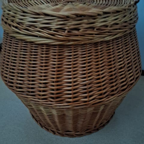 Rottinkinen pyöreä kori. Kannella.