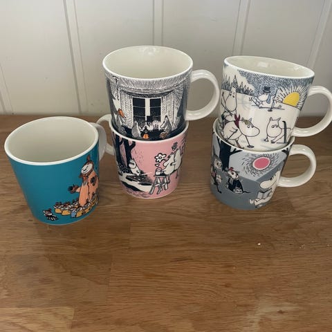 Arabia Muumi mukit ” Tiuhti ja Viuhti ”, ”Hiihtäen Herra Virkkunen” ja Nipsu