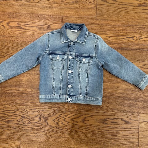 Myydään Lindexin helmisomisteinen farkkutakki, koko 122cm /6-7y.