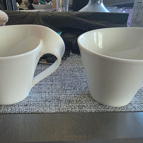 Toisen kupin kyljessä edelleen tarra osittain paikoillaan, en ole yrittänyt poistaa.