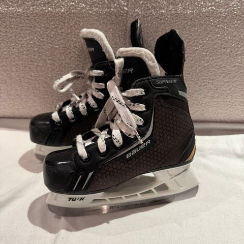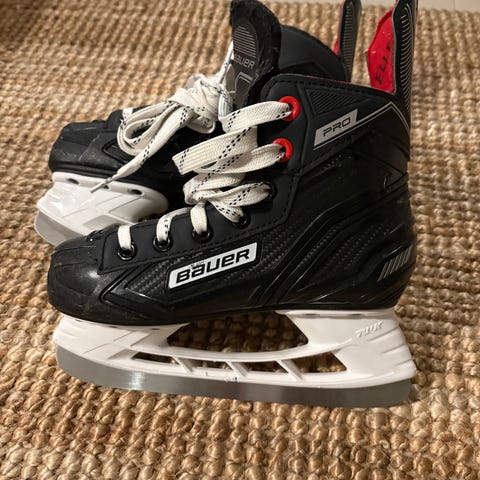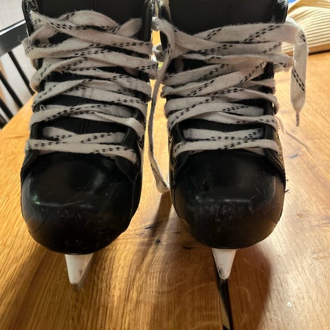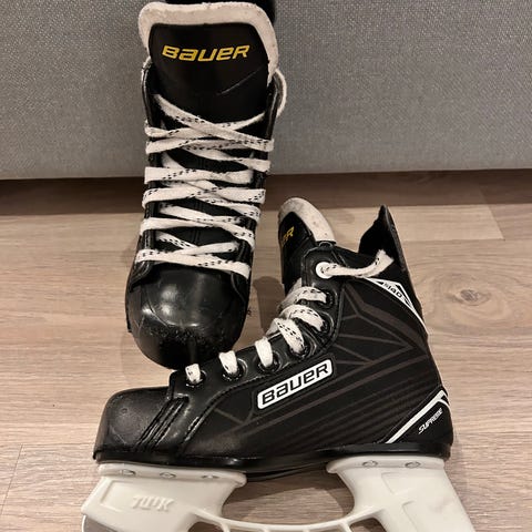Bauer (jääkiekko-) luistimet, lasten koko 32. Mukana teräsuojat. Kunto hyvä, joitain naarmuja kärjessä (katso kuvat).