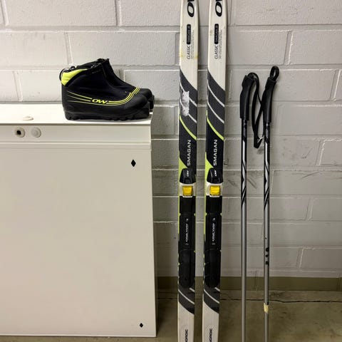 Lasten suksipaketti 110 cm perinteiseen hiihtoon, voiteluvapaalla pitopohjalla.