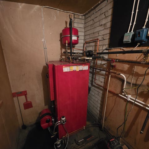 Myydää kuvan öljykattila ja oilon poltin.
