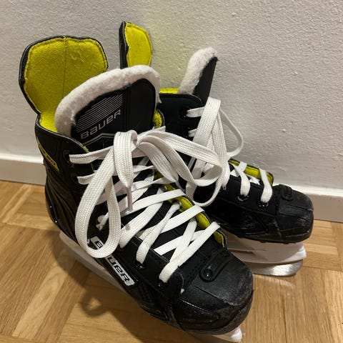 Bauer-merkkiset luistimet, hokkarit koossa 31. Suurehkoa kokoa. Käytön jälkiä on jo reippaasti mutta toimivat luistimet. Mieluiten nouto Nummenmäestä.