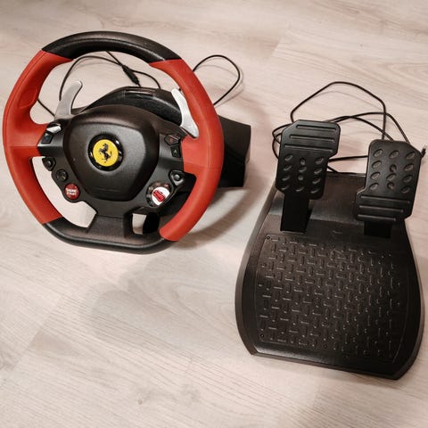 Thrustmaster Ferrari 458 Spider -rattiohjain Xboxille – kuin uusi, polkimet mukana, toimitus Turku–Rauma -alueella.