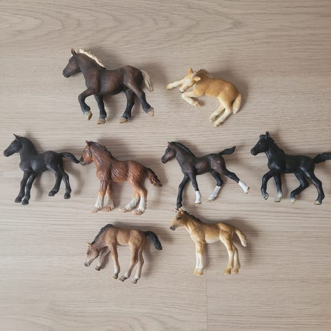 Hyväkuntoisia Schleich varsoja 10kpl. Myydään mieluiten kaikki kerralla.