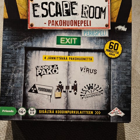 Kahteen kertaan pelattuja pakohuonepelejä. Ovat hyvin uudelleen pelattavissa, muutamia tehtävälappuja on taiteltu (kaikki materiaali löytyy myös netistä ja on ilmaiseksi uudelleen tulostettavassa).