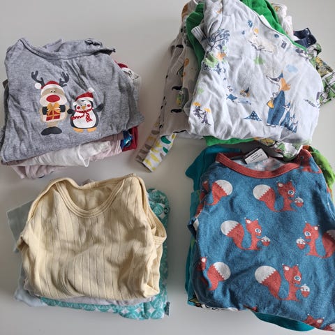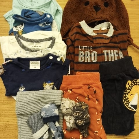 Iso paketti lasten vaatteita, koot 62, 62-68 ja 68. Kaikki vaatteet erittäin hyvässä kunnossa. Paketti sisältää 40 vaatekappaletta: