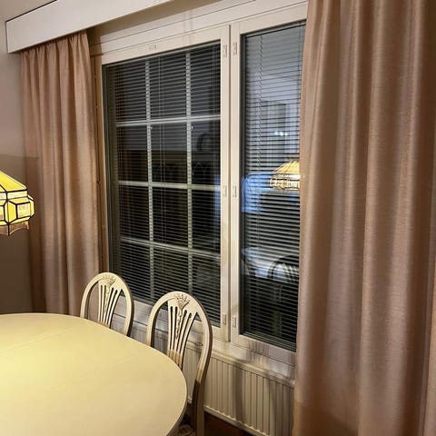 Meidän entisestä olohuohuoneesta pestyt, moitteettomassa kunnossa olevat verhot.