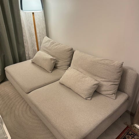 Muutama vuosi sitten ostettu Ikean Söderhamn sohva, myydään suuremman sohvan tieltä pois. Värissä Gransel luonnonvärinen. Divaanin syvyys 151cm.